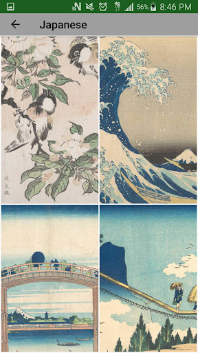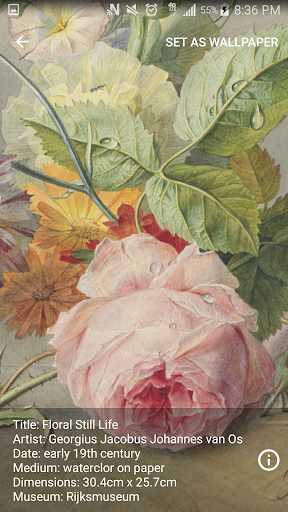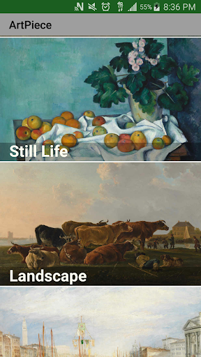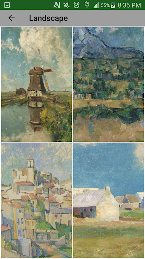 Ứng dụng này đã có Monet, Manet, của Van Gogh, Cezanne, Joseph Mallord William Turner's; Vẫn là những bông hoa và thực phẩm, cảnh quan, cảnh biển, chân dung, và nhiều hơn nữa.