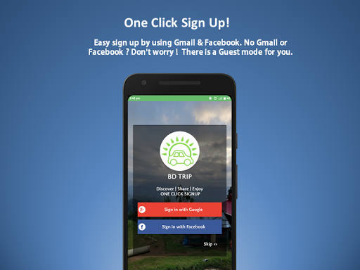 BD Trip cho phép người dùng đăng ký dễ dàng sử dụng tài khoản Facebook hoặc Gmail của họ.