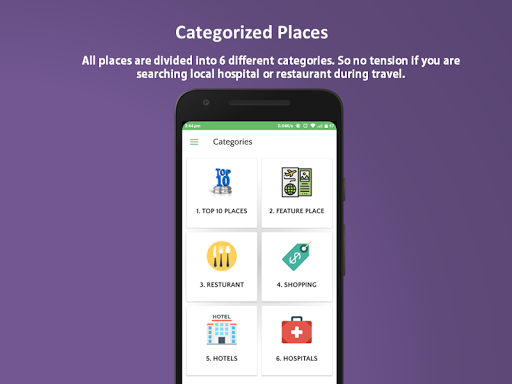Tất cả thông tin trong ứng dụng liên quan đến các địa điểm khác nhau được phân loại và có thể dễ dàng tìm kiếm sử dụng phần này của Ứng dụng.