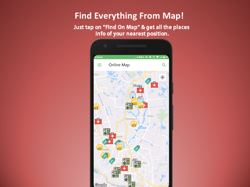 một chế độ xem bản đồ của tất cả các nơi có sở thích có sẵn. Quan điểm có chứa mua sắm, bệnh viện, nhà hàng, khách sạn và những địa điểm nổi bật của Bangladesh. Người dùng có thể tìm kiếm vị trí theo tên và tìm hướng đến nơi dễ dàng.
