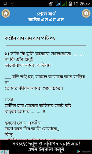 Cuộc sống của con người không đầy niềm vui và hạnh phúc nhưng đôi khi nhiều thhat thhat xảy ra khiến chúng ta không nói nên lời SMS là một trong những cách phổ biến để nói chuyện và giao tiếp. Ứng dụng này chứa sms buồn vì trái tim tan vỡ mà làm bạn khóc. Tất cả các SMS chúng tôi đã thu thập từ Dionary buồn và hất vả được chọn tốt nhất.