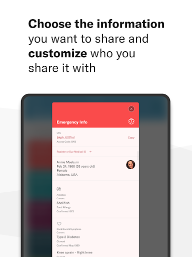 • Sử dụng URL duy nhất để giữ thông tin khẩn cấp về trang sức y tế hoặc trong y tế điện thoại của bạn ID