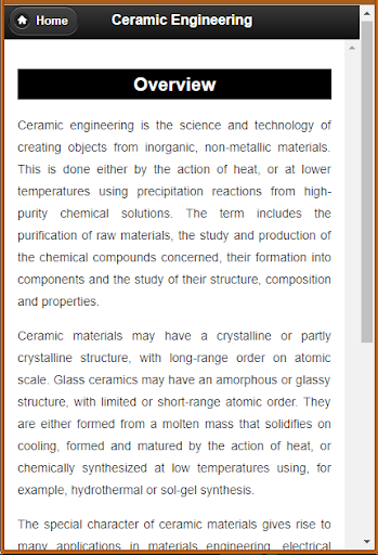 Basic Lessons of Ceramic Engineering are the subject matter of this app.