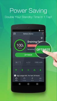 Just click the "optimize" button for fast battery optimization. Battery saving is achieved by clearing the ram memory.