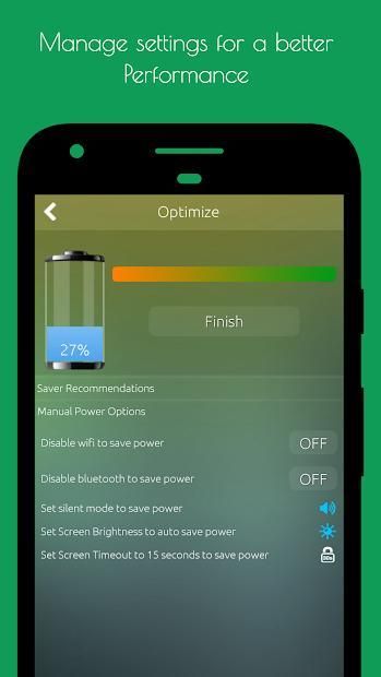 Saving your phone battery with just one tap. Battery Saver: Power master will stop the background running apps that drain battery too fast and recommend the function to turn off in order to save more power. This is function serves as clean booster/memory cleaner and speed up your android devices as well. Battery optimizer will also indicate how many hours you have.