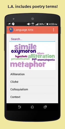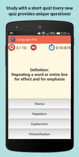 This app is designed to help anybody learn terms easily! This app includes a Math, Science, Social Studies, and Language Arts section. Science also includes 5 subsections. Additionally, there is a convenient search bar and a feedback section! In the study section, users can review with convenient flashcards and/or study with a short quiz. With a simple and beautiful layout, anyone can use this app to help them at any time. Learn today, for a better tomorrow!