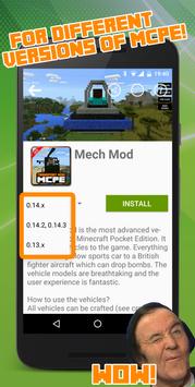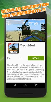The Mech Mod is the most advanced vehicles mod for Minecraft Pocket Edition. It adds nine vehicles to the game. Everything from a fast yellow sports car to a British fighter aircraft which can drop bombs. The vehicle models are breathtaking and the user experience is fantastic.
