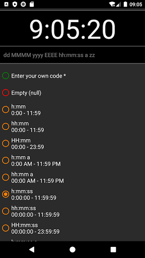 Kích thước phông chữ của đồng hồ được điều chỉnh tự động theo kích thước màn hình của thiết bị của bạn.Bạn có thể sử dụng thiết bị của mình theo chiều ngang hoặc chiều dọc.