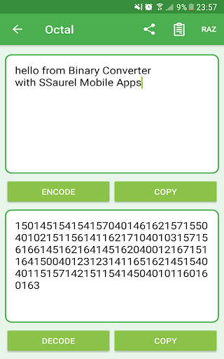 Binary Converter helps you to convert texts in Binary, Octal or Hexadecimal