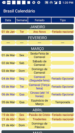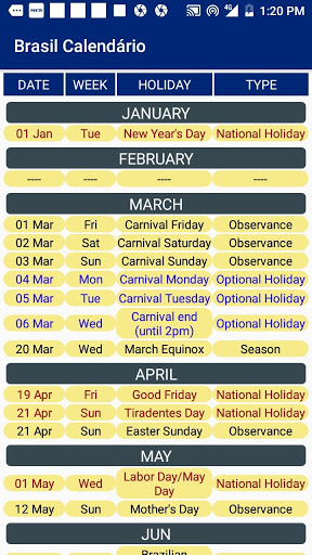 Lịch Brazil 2020 Tài nguyên ứng dụng: -