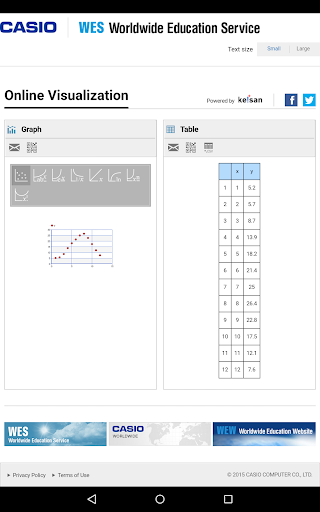The app is equipped with a graph display function that makes numbers visually easier to understand and a function for sharing group work on a website. It is fitted with a newly developed QR Code scanner engine that has been optimized for the ClassWiz series. It also supports multiple QR Codes, allowing you to send large volumes of data, such as numerical tables.