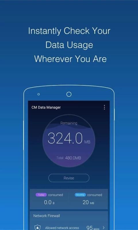 CM Data Manager is a reliable app to help you manage your mobile data. It lets you instantly check data usage & network speed at all times, and monitors all mobile data usage in the background and foreground. It can even protect your phone bill by blocking apps that waste your data allowance!