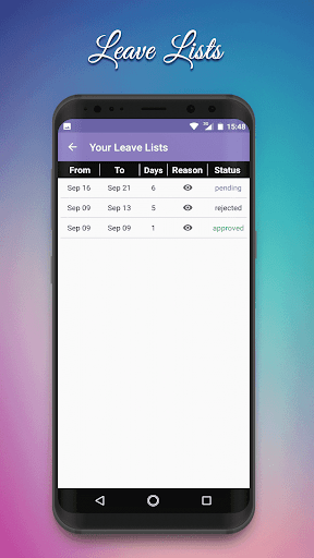 5) See all the leave you have taken with the status (pending/accepted/rejected)