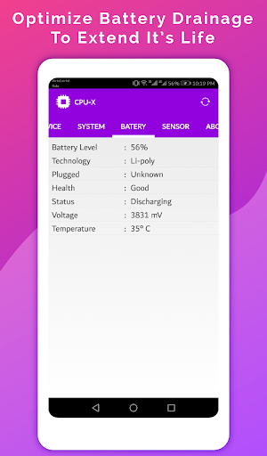 - Cảm biến: Tất cả các cảm biến Trong thiết bị của bạn với thử nghiệm thời gian thực.