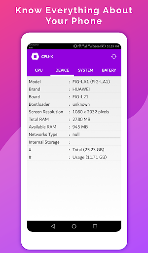 Thông tin phần cứng CPU là một ứng dụng đặc tả phần cứng cho Android với thông tin chi tiết về điện thoại thông minh của bạn bao gồm: