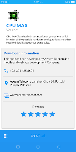CPU Max là ứng dụng tuyệt vời cung cấp thông tin sau đây về thiết bị Android của bạn mà không có bất kỳ sự cho phép thiết bị nào mô tả như sau, chi tiết đầy đủ.Nó rất đơn giản để sử dụng ứng dụng rất nhiều thông tin để cung cấp thông tin hệ thống.BR>