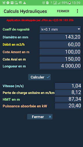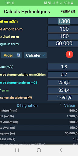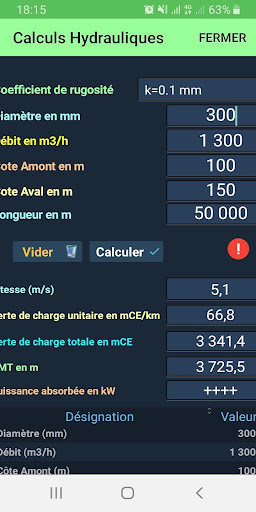 tải Hệ số tổn thất là một số không thứ nguyên mô tả các tổn thất tải tuyến tính trong các đường ống.Hệ số này tăng theo độ tuổi của đường ống.Ứng dụng "tính toán thủy lực" tính đến.Sự lựa chọn của hệ số này là một phần của các tham số ban đầu để điền vào trước khi các phép tính được khởi chạy.Theo mặc định, một hệ số độ nhám 0,1 được đề xuất.Ngoài ra, để tính toán tổng thiệt hại, nó được áp dụng một hệ số 1,1Sur các khoản lỗ tuyến tính.