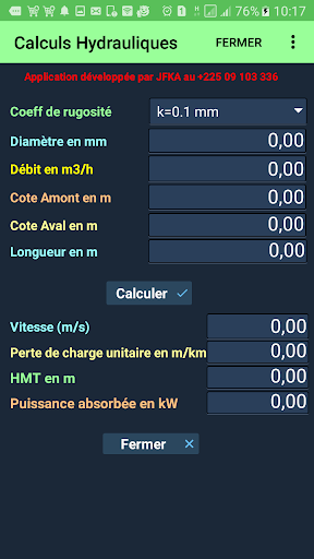 Ứng dụng này giúp có thể tính toán tốc độ và tổn thất tải trong các đường ống theo các đặc tính thủy lực như dòng chảy, đường kính và đặc điểm địa hình (bờ lùi và xuôi dòng).