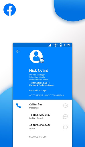 Showing Full name and social account(FACEBOOK TWITTER) of the caller