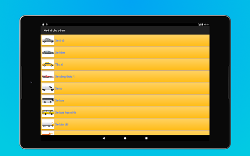 "Xe cho trẻ em" là một ứng dụng giáo dục miễn phí giúp trẻ em học cách nhận ra xe và âm thanh của họ.