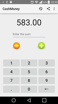 Cash Money - is a simple and user-friendly application for registration of personal cash for those who wish to control their income and expenses. Just add on their income or deductible expenses, and you'll always know how much you have cash in your pocket