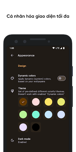 • Tùy biến giao diện sâu sắc với nhiều màu sắc và chủ đề;