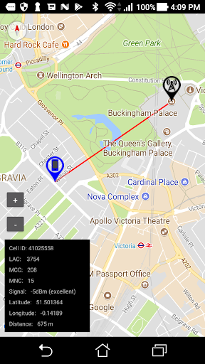 Ứng dụng này có thể hiển thị tất cả các thông tin về mạng di động của bạn và hiển thị vị trí hiện tại của bạn và vị trí của tháp di động nơi điện thoại di động của bạn được kết nối.Cho phép bạn biết khoảng cách giữa điện thoại và tháp điện thoại di động.