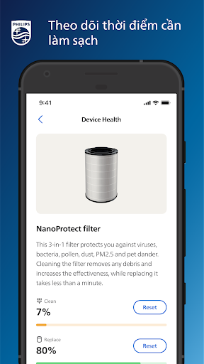 Cùng với thiết bị Philips Air được kết nối của bạn, Air mang đến trải nghiệm thông minh đảm bảo bạn hít thở không khí sạch và lành mạnh.