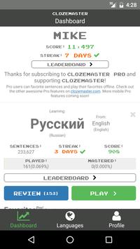 - Subscribe to Clozemaster Pro https://www.clozemaster.com/pro to favorite sentences and be able to practice your favorites offline.