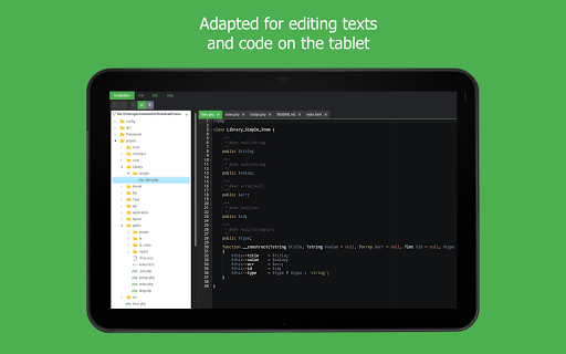 Perfect for desktop mode on Android devices. No account or Internet connection required, just download, run and start coding! The code files will be managed locally on your device.