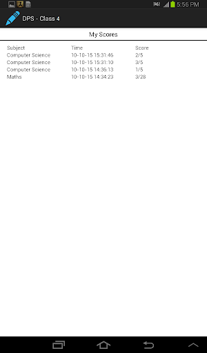 This android app contains tests on various subjects for DPS class 4 students. The subjects include: Maths, Computers, Science, English, Moral Science, General Knowledge. The Questions are multiple choice type with only one correct answer. This app will help the students to test their knowledge on the subject and prepare for their exams.