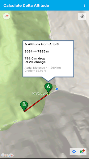 Delta Altitude là một máy tính độ cao Cho phép bạn có độ cao bất cứ điểm nào hoặc thay đổi độ cao giữa hai điểm chỉ bằng cách nhấn vào bản đồ.