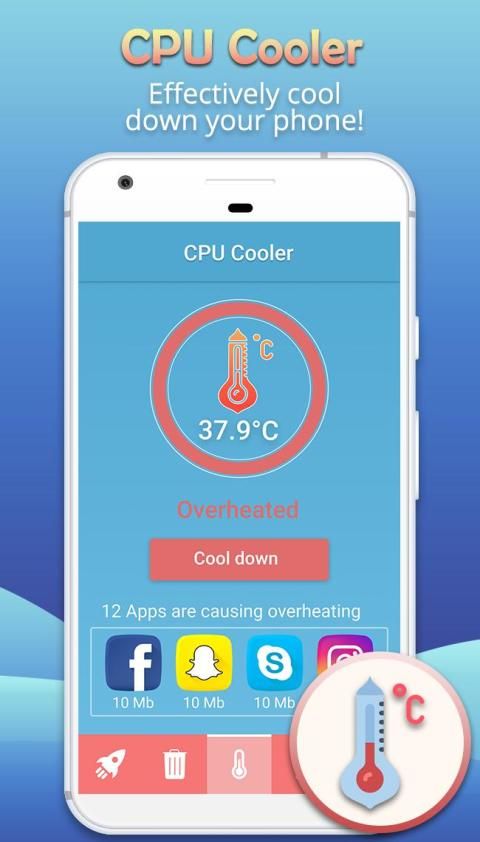 CPU Cooler allows analysing CPU usage in order to reduce the load imposed on the CPU, as well as a close task running in a background mode with the one click. Boost your device performance rates up to 50%.