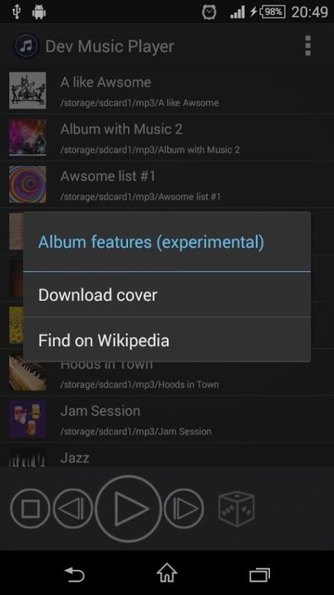 If you are looking for simple, fast mp3 player Dev Music Player is for you!