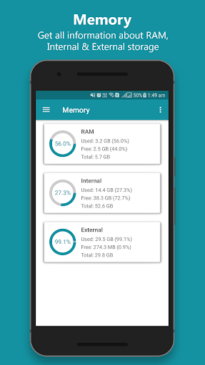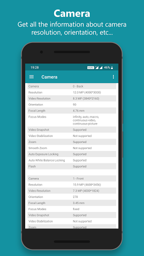 Thông tin thiết bị cung cấp cho bạn thông tin cơ bản và nâng cao của điện thoại, hệ thống và phần cứng Android của bạn với giao diện người dùng hấp dẫn và đẹp mắt.