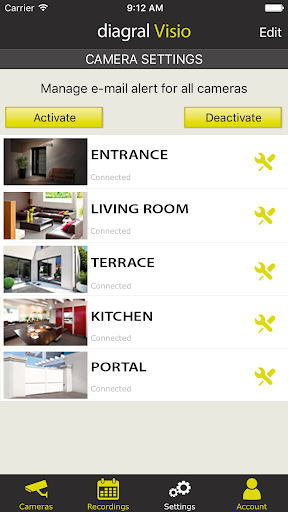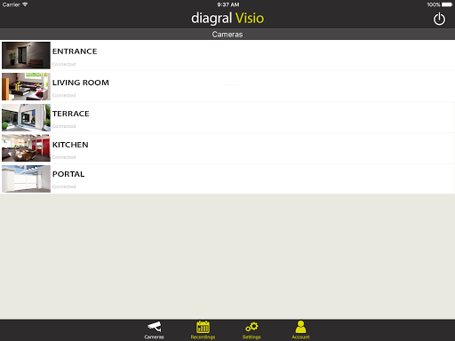 The Diagral Visio application allows you to remotely live-view your cameras and recordings to check what happens at home with the ability to trigger a recording.