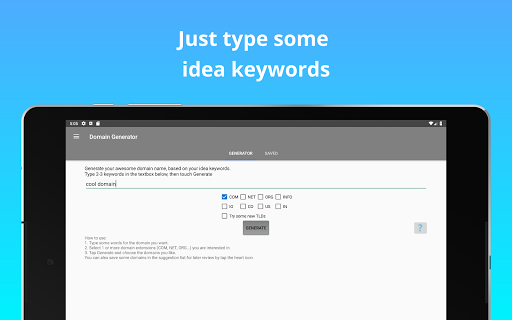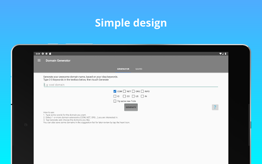 Now you move on mobile and want to generate some new domain names using your favorite tools, as convenient as native app.