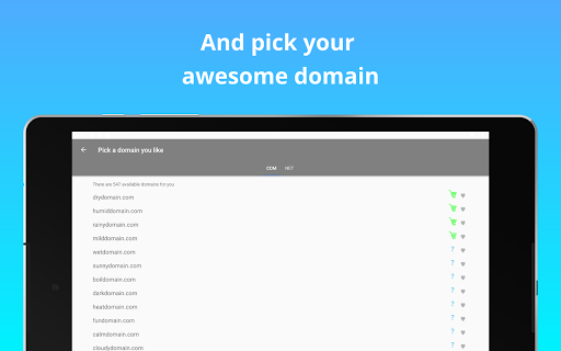 3. Choose a domain name that you like best from many available suggested one. The app will try to do whois lookup to ensure the domain suggestions for you are available