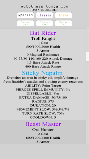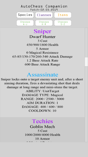 Ứng dụng đồng hành có đầy đủ chi tiết cho các cờ, loài, lớp học và các mặt hàng. Thông tin trong ứng dụng dựa trên bản vá tháng 2 năm 2019