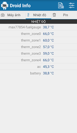 - Nhiệt độ: Nhiệt độ bên trong chiếc điện thoại thông minh của bạn.