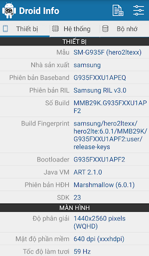 – Thiết bị: Mẫu, Nhà sản xuất, Chipset, Số Build và Phiên bản HĐH Android.