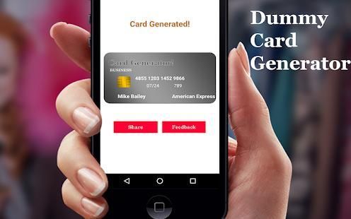 Dummy - Fake credit card generator is used to generate unlimited dummy virtual credit cards. Virtual credit cards are used to shop or transfer money online, e.g you want to shop toys for your kids or want to buy a beautiful valentine gift for your girlfriend and you don't want to expose your real credit, master, discover or American express card, in that case you can use this app to generate a fake dummy credit card to make online money transfer. Always remember as mentioned in app title that this is a fake and dummy credit card generator so that's why this app only generates only fake cards and NO online transfer or purchase can be done because this is a fake app.