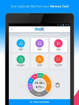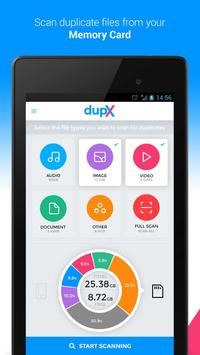 DupX allows you to find duplicate photos, images, pictures, audio, videos & documents by scanning through your entire phone and SD Card.