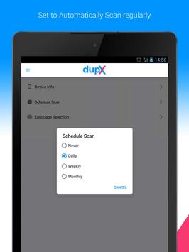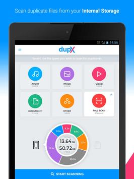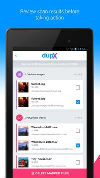 DupX is a powerful and easy to use Duplicate File Finder & Remover app. DupX allows you to "Search, Find, Remove Duplicates, Organize & Optimize your phone" in just one tap.