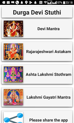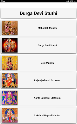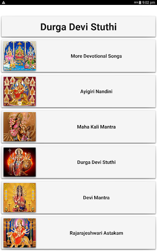 Ứng dụng Durga Devi Stuthi chứa một số bài hát sùng kính Durga tốt nhất, Bhajans và Stotrams.