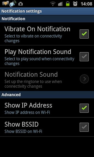 ✔ Hành động thông báo có thể thay đổi (Goto: Tùy chọn, Không dây và Mạng, Cài đặt Wi-Fi)