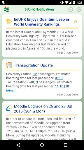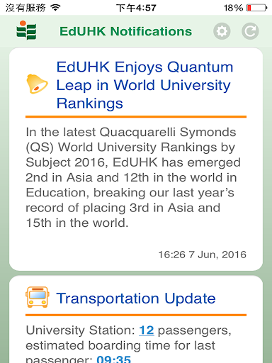 Ứng dụng thông báo EDUHK cung cấp cho nhân viên và sinh viên một cách thuận tiện để nhận thông tin và cảnh báo về EDU với điện thoại thông minh.