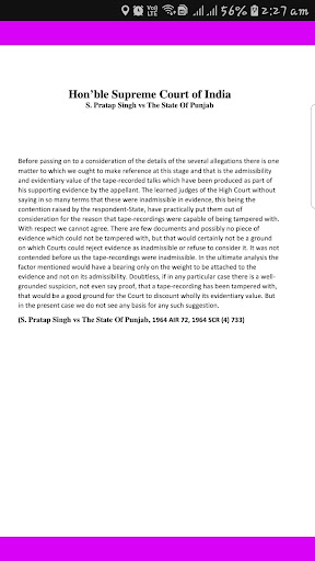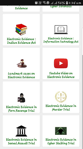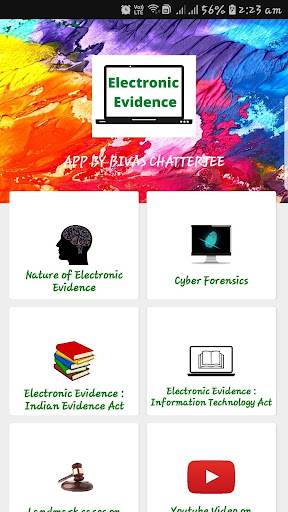 Ứng dụng này liên quan đến độ sâu về bản chất rất đặc biệt của bằng chứng điện tử, pháp y mạng, chuỗi lưu ký. Ứng dụng này cũng cung cấp một phần của Đạo luật Bằng chứng Ấn Độ và Đạo luật Công nghệ Thông tin liên quan đến bằng chứng điện tử. Ứng dụng này chứa phần có liên quan của các đánh giá mốc về bằng chứng điện tử. Hơn hai mươi lăm đánh giá đã được thảo luận. Bốn trường hợp tội phạm quan trọng phụ thuộc hoàn toàn vào bằng chứng điện tử cũng đã được thảo luận. Ứng dụng được kết nối với một video YouTube liên quan đến bằng chứng điện tử. Có thể cung cấp một ý tưởng tổng thể về bằng chứng điện tử là bằng chứng quan trọng nhất trong thế giới ngày nay.
