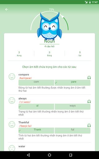 • Theo "dõi quá trình học tập" của bạn một cách hiệu quả để bạn biết được tổng quan về trình độ phát âm của bản thân.
