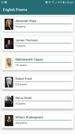 Chúng tôi đã chọn một số nhà thơ nổi tiếng thực sự được biết đến để trưng bày những bài thơ và bài thơ của họ trong ứng dụng.